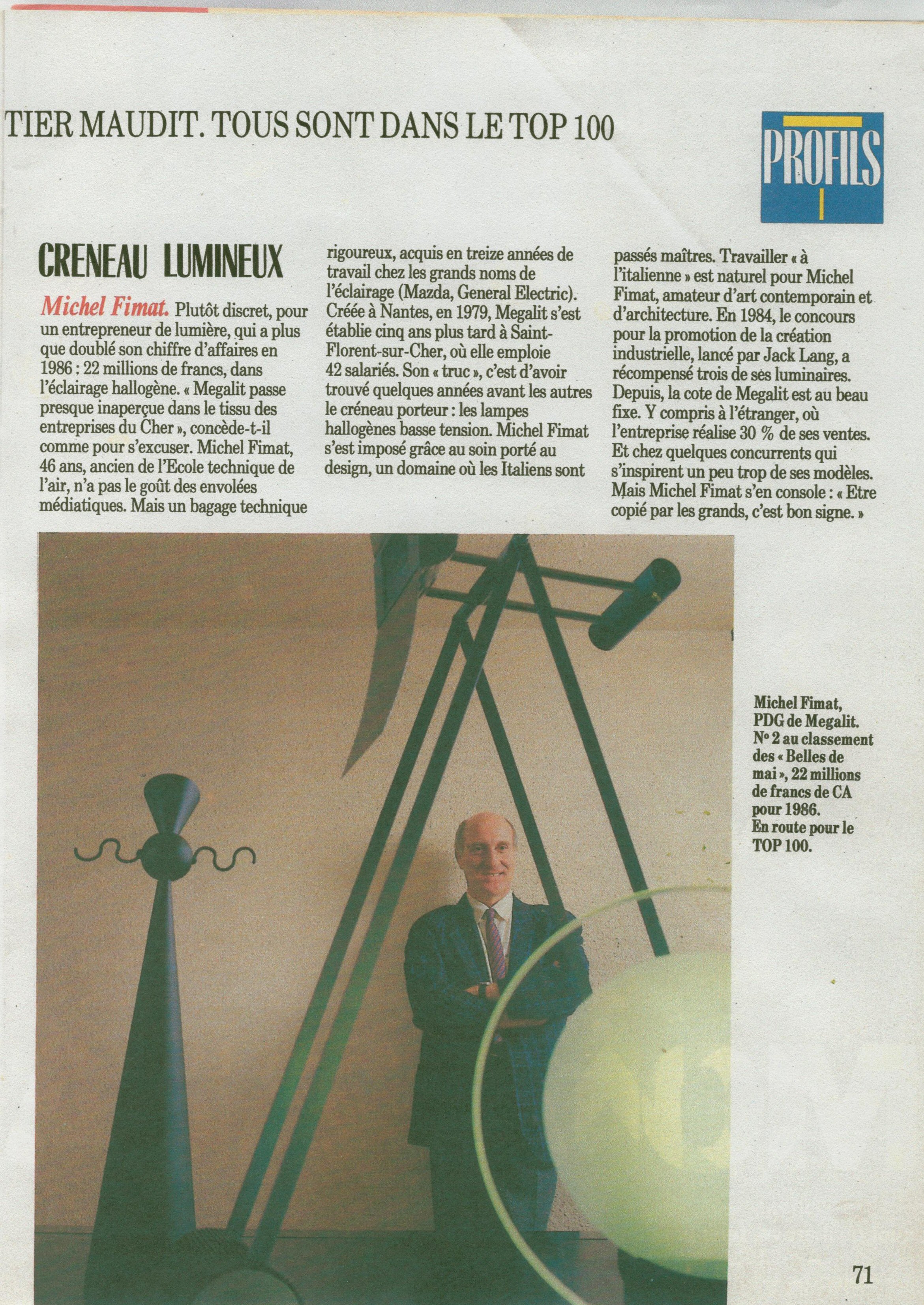 -1985: Un concours national lancé par le ministère de la culture sur la réalisation de lampes de bureau innovantes nous permet d’être 3 fois lauréat sur 5 prix attribués.