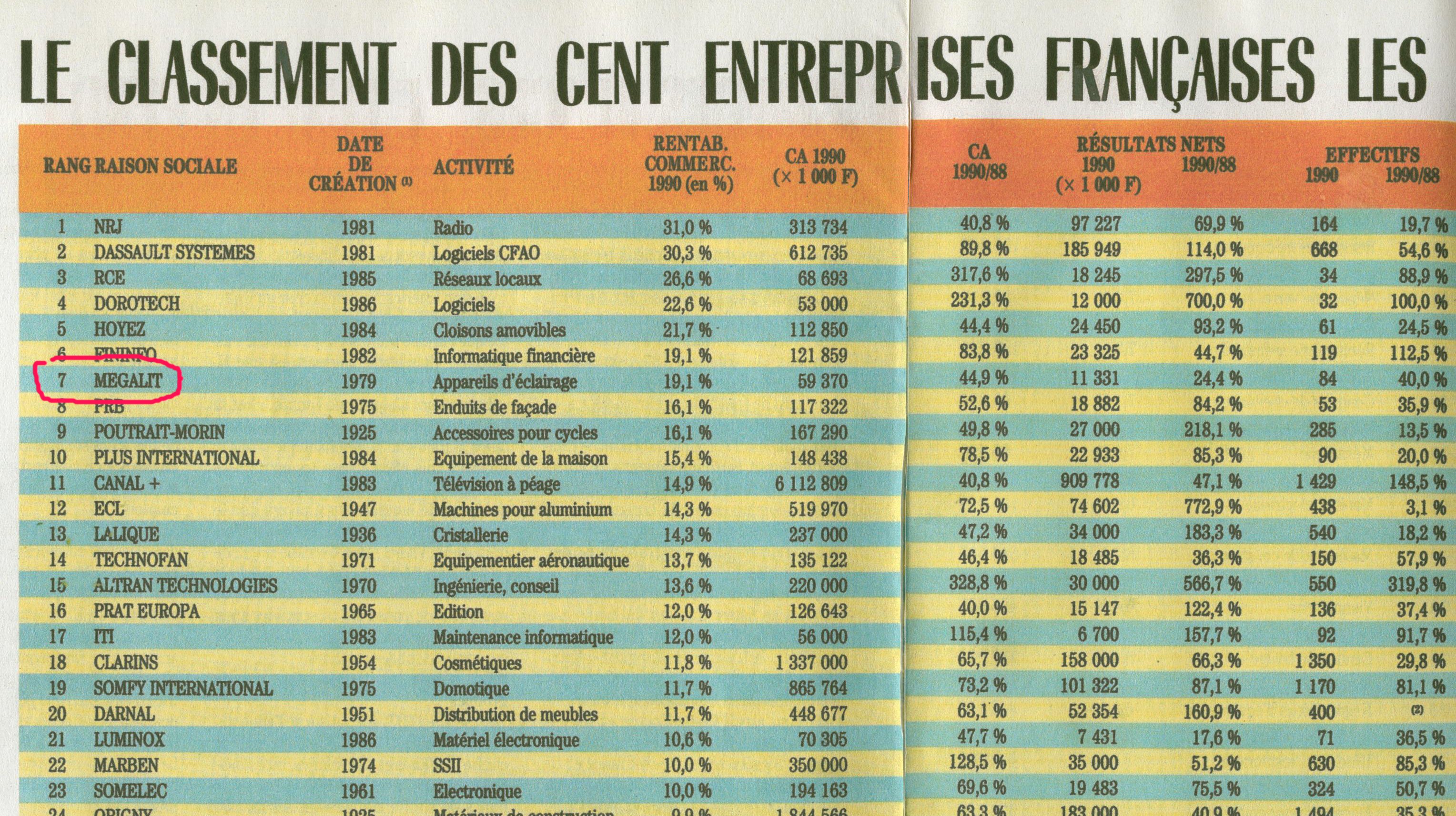 En 1988 Megalit entre dans le top 100 des entreprises françaises les plus performantes (palmarès réalisé par le magazine l’Entreprise)